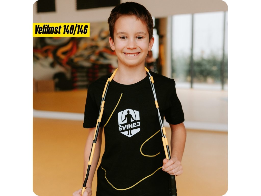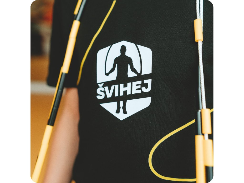 Vpredu nájdeš naše logo Švihej a tiež žltý švihanec. Navyše padne dievčatám aj chalanom. Na výber máš z veľkostí od 128 do 152. Tak skoč do toho!