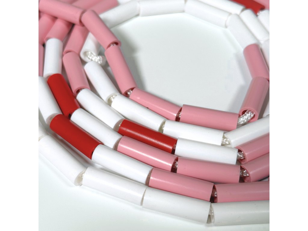 Zostaviť si korálikové švihadlo je hračka. Koráliky sú už navlečené na nylonovom lanku. Ak si chceš zostaviť vlastný variant a navliecť si koráliky podľa seba, pozri sa na variant Zostav si sám.