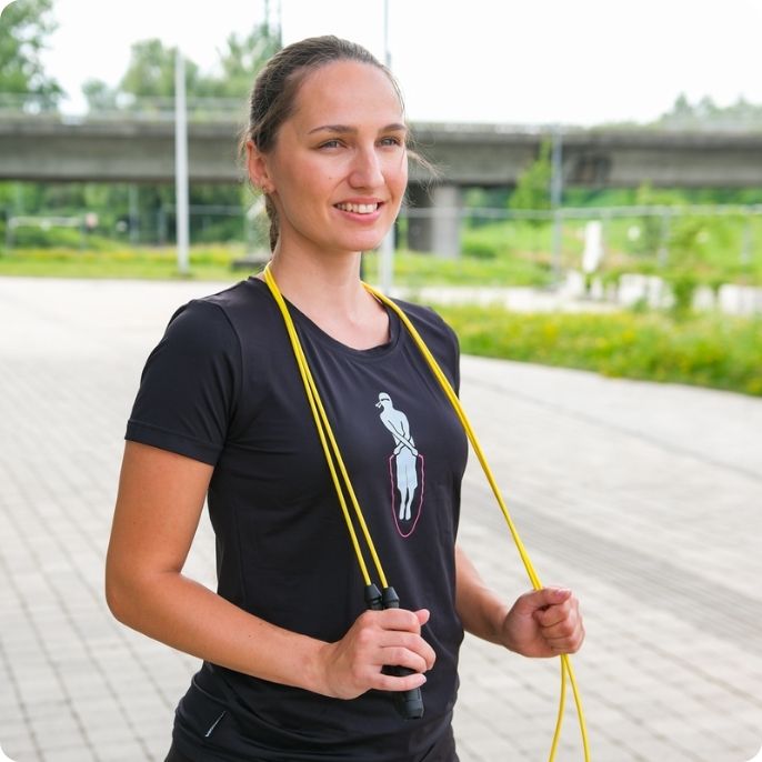 - Ideálne švihadlo, ak chceš doplnkovo švihadlovať vo fitku alebo napríklad na lekciách.