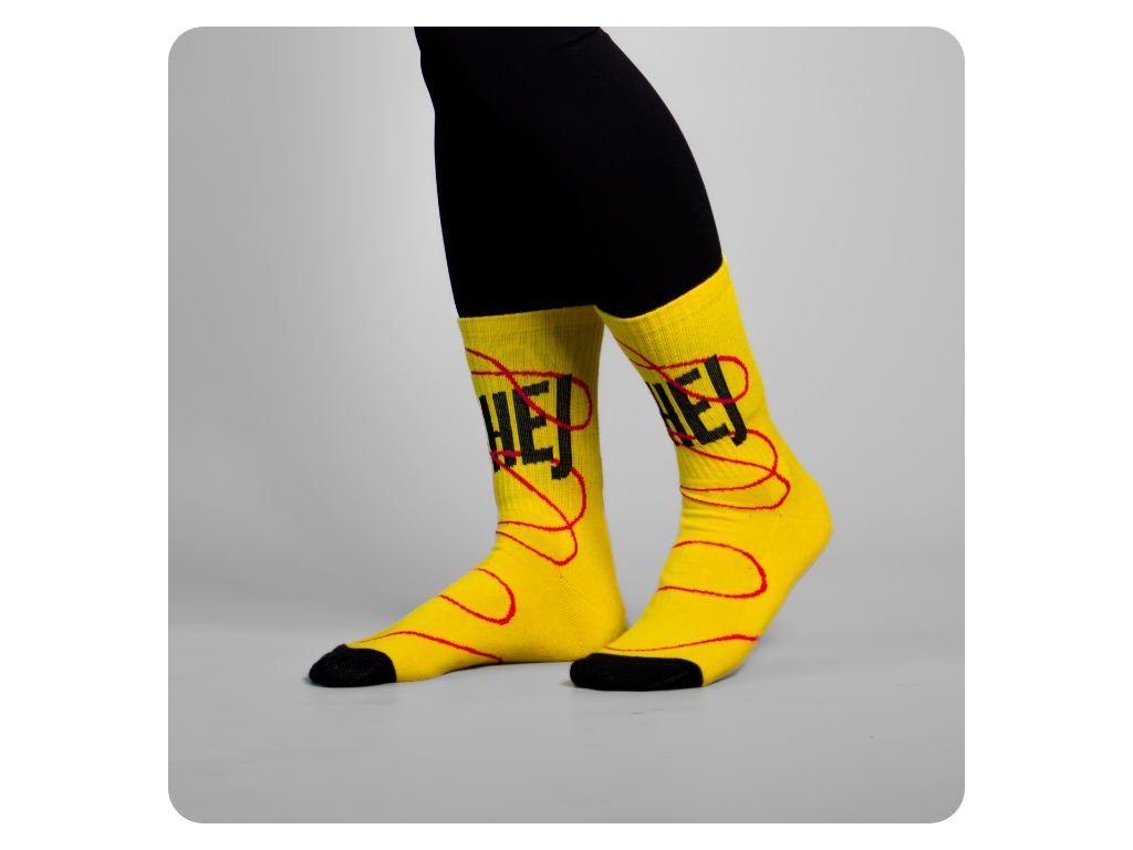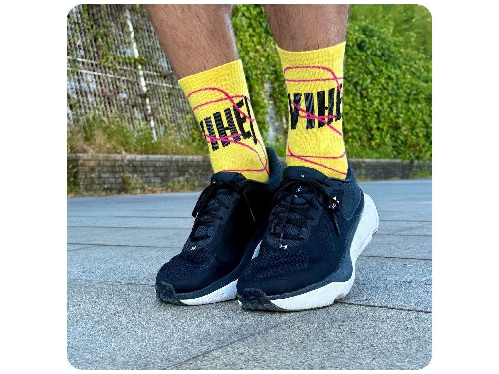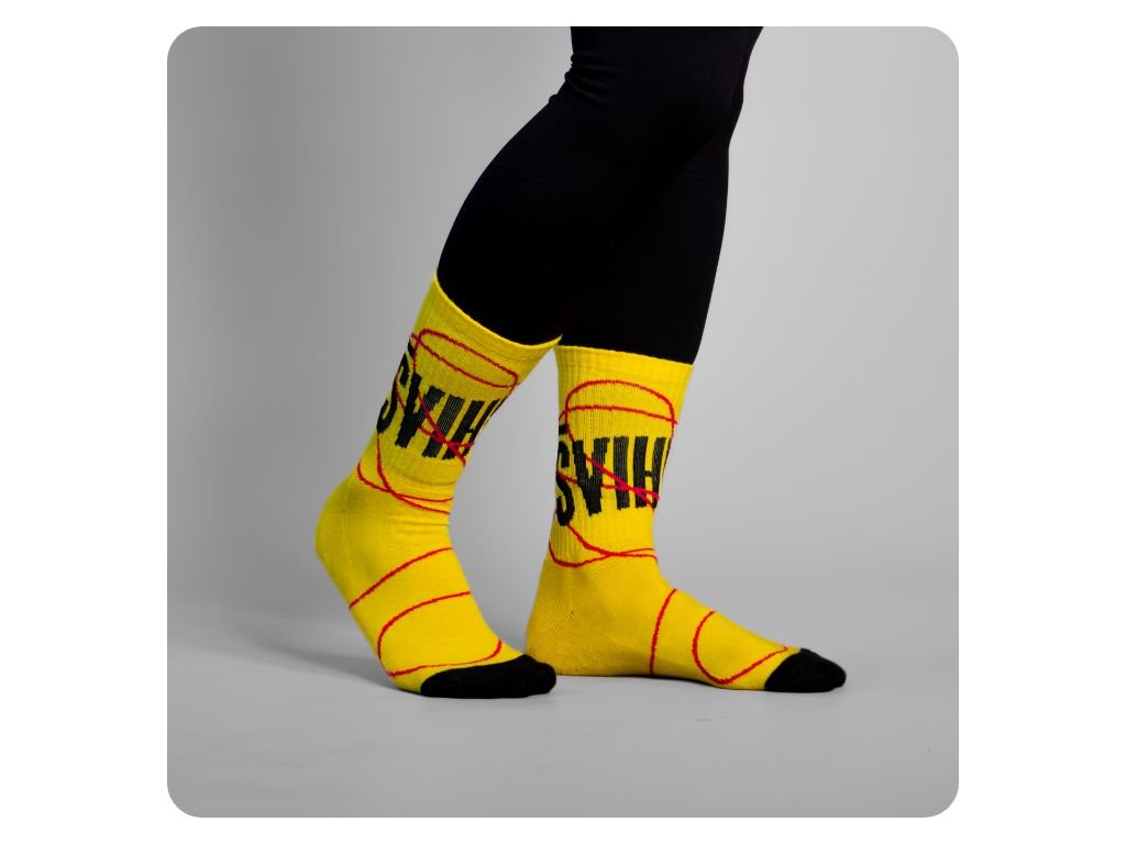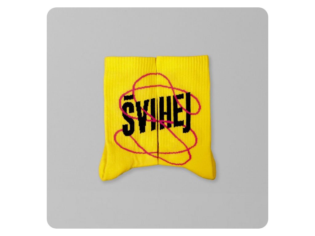 - Švihácky dizajn: žltá farba, nápis Švihej, ružové lanko a čierna špička