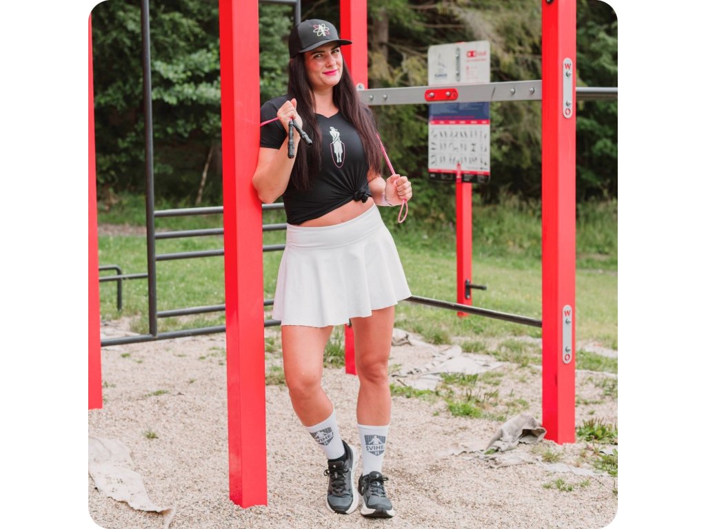 Švihaj ako Ninja.🥷Toto športové triko je ideálne na švihanie, šport, ale aj bežné nosenie. Lebo toto tričko ti sadne ako žiadne iné. Vpredu nájdeš Ninju, ako valí cross, a vzadu potom vertikálny nápis Švihej pretkaný švihadlovým lankom.